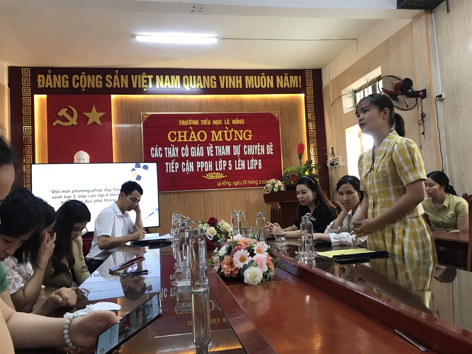 Thực hiện sự chỉ đạo của Phòng Giáo dục và Đào tạo và Kế hoạch năm học 2022 - 2023 của nhà trường, để giúp học sinh (HS) lớp 5 lên lớp 6 có hành trang vững chắc, bước chuyển tiếp nhịp nhàng giữa hai bậc học, sáng ngày 25/3 /2023, tại trường TH Lê Hồng, trường Tiểu học Lê Hồng phối hợp với trường THCS Lê Hồng tổ chức sinh hoạt chuyên môn liên trường nội dung dạy học lớp 5 theo hướng tiếp cận CT lớp 6 theo GDPT 2018.
